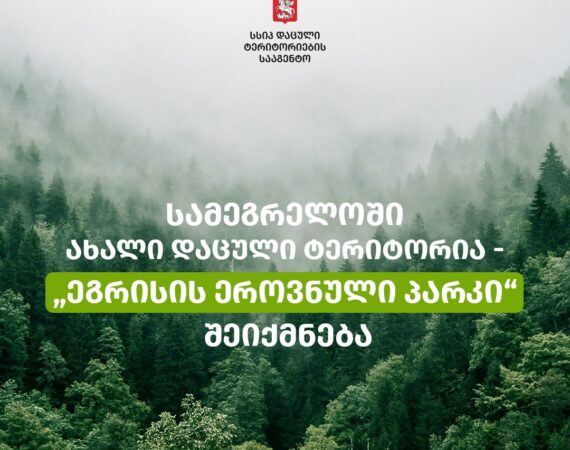 წალენჯიხის, ჩხოროწყუსა და მარტვილის მუნიციპალიტეტების ადმინისტრაციულ საზღვარში 37 074 ჰა ფართობს ეროვნული პარკის სტატუსი მიენიჭება და ახალი დაცული ტერიტორია – ეგრისის ეროვნული პარკი შეიქმნება. გარემოს დაცვისა და სოფლის მეურნეობის სამინისტროს ინფორმაციით, კანონპროექტი პარლამენტში ინიცირებულია და კანონის ძალაში შესვლა 2027 წლისთვის იგეგმება.